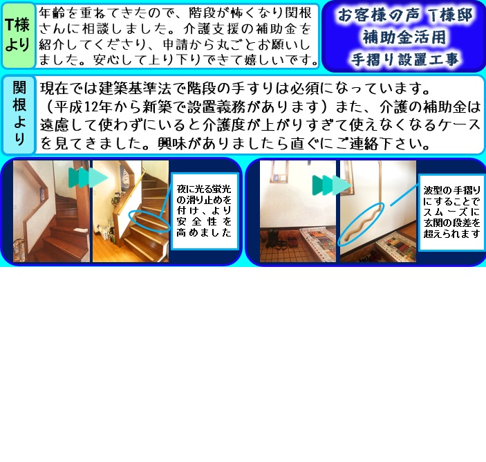 お客様の声(補助金活用手摺り設置工事)
